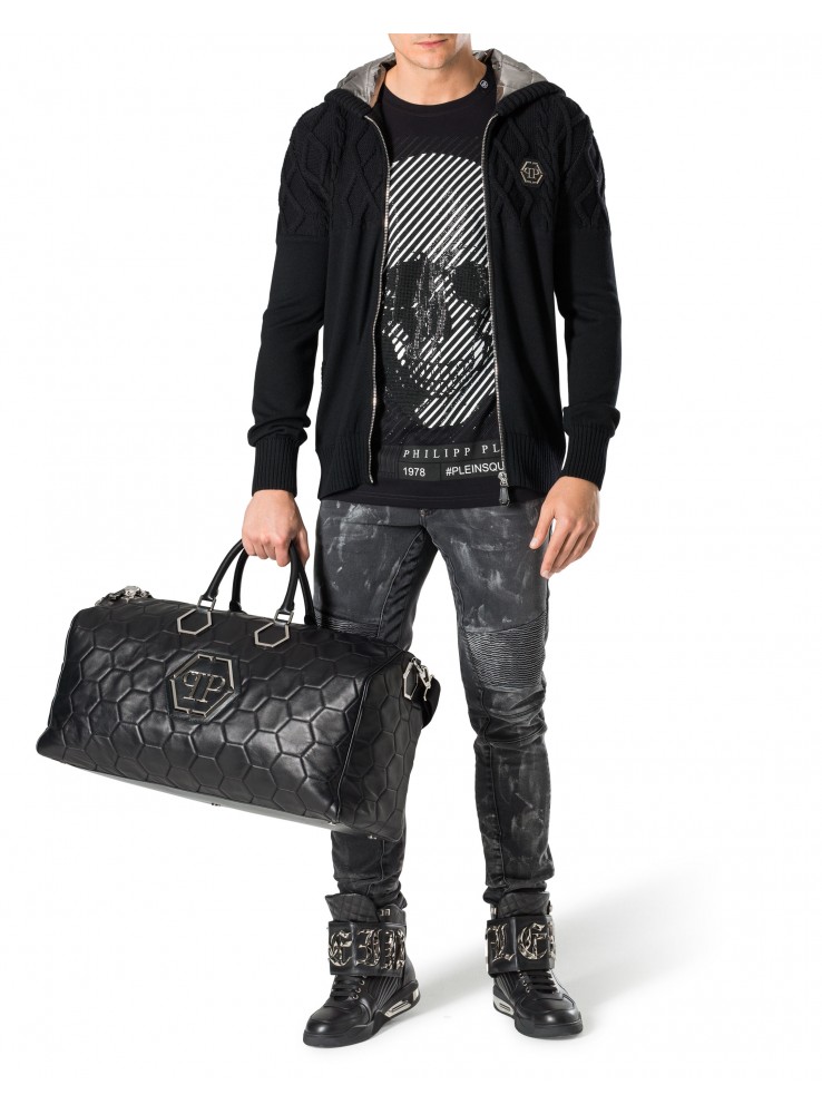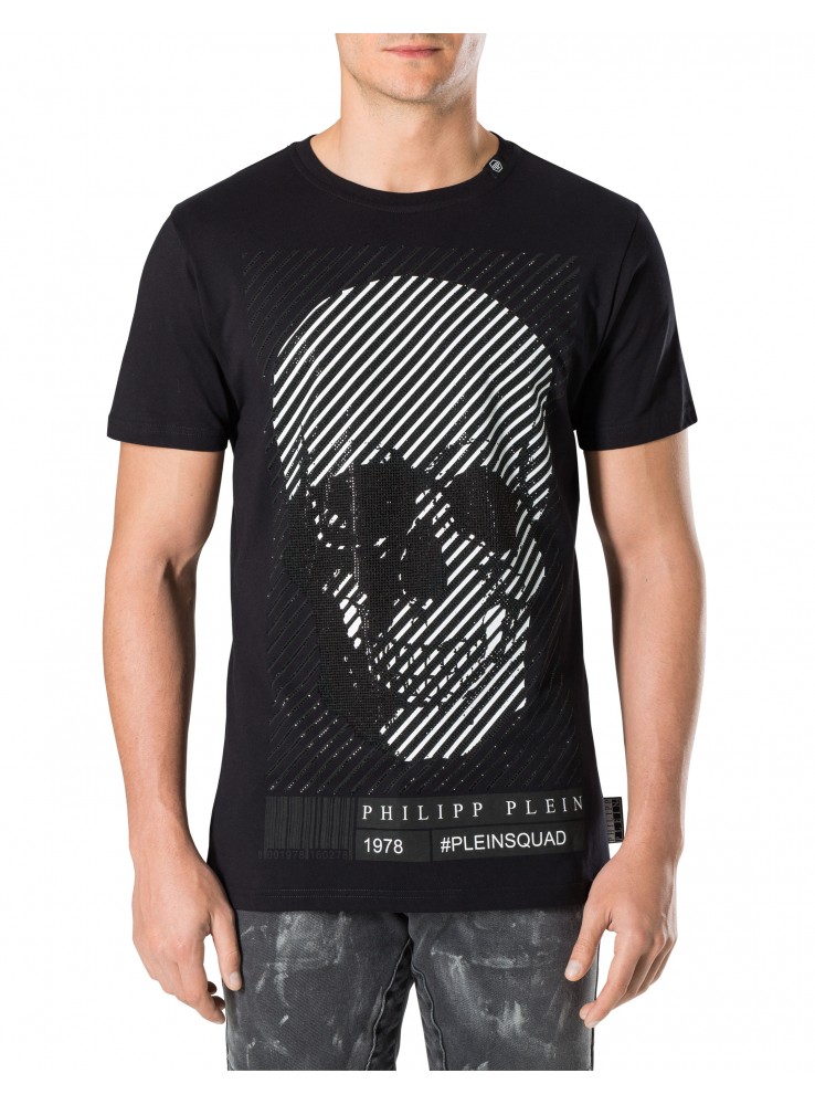 Camiseta de felpa de algodón. Grande estampado de la icónica calavera enriquecida con cristales en la parte frontal. Icónico estampado en la espalda.