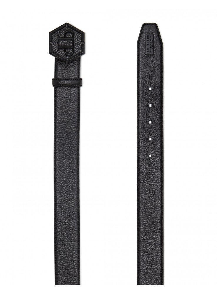 Cinturón de piel de ciervo. Hebilla de metal con logo. Longitud ajustable de 95 cm.