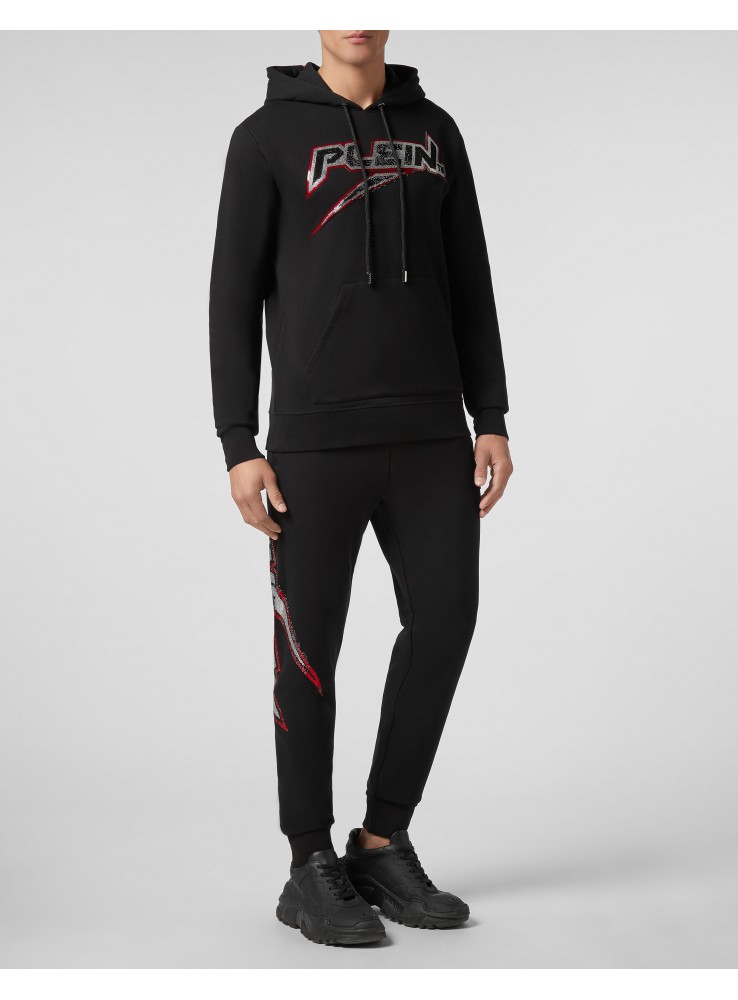 La iconografía de Philipp Plein se identifica por las letras. En esta sudadera de felpa de algodón con capucha se presenta en su versión más novedosa con cristales y estampada en la parte frontal. Presenta el logotipo hexagonal de la firma cosido en la capucha. Bolsillos tipo canguro. Puños y borde inferior de canalé.